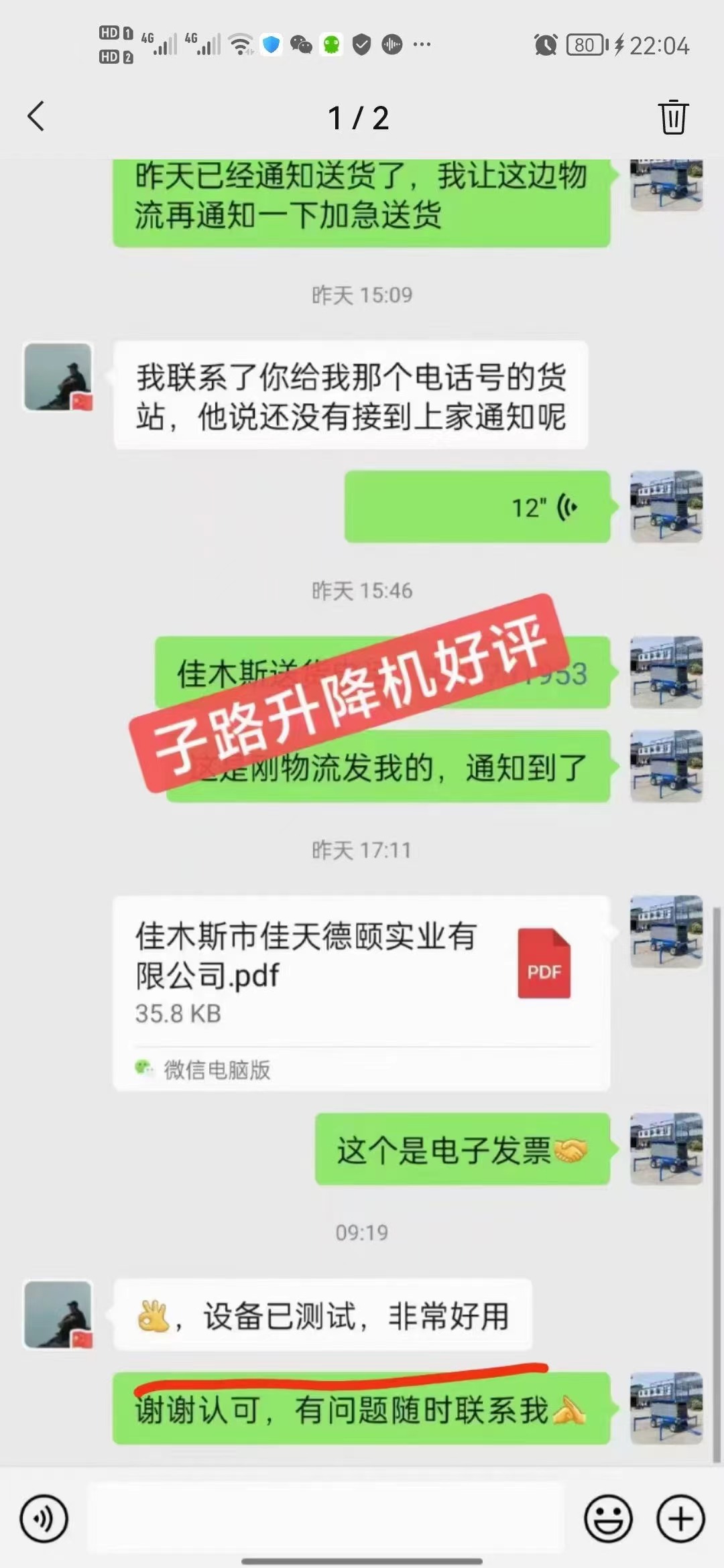感谢佳木斯郑总好评!感谢吴黄寺师傅好评!金杯银杯不如客户的口碑,客户说好才是真好,有的客户说,升降机哪都有卖的,为什么你比别人的贵一些?实际上价位高低不是我说了算的,是成本说了算,是市场说了算!